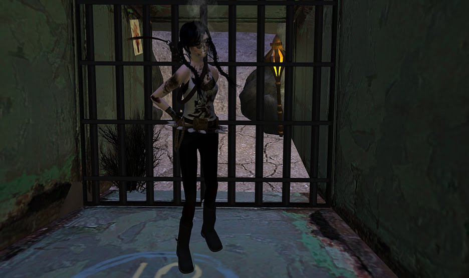 Tsu say some trail is over the edge on the bridge so I know the place things land when they go over the bridge there so I was crawl down to make the look. I seen blood and then I seen the shape of a person in the blood and it was a girl. I yell for to come help me with the blood girl and then I see who is the girl it is Lajka. Then I see she is not so dead as she look and I get close to her face. She had a wrap on her eyes that is the so blood it make me hurt to think of it because she only had the one eye before.